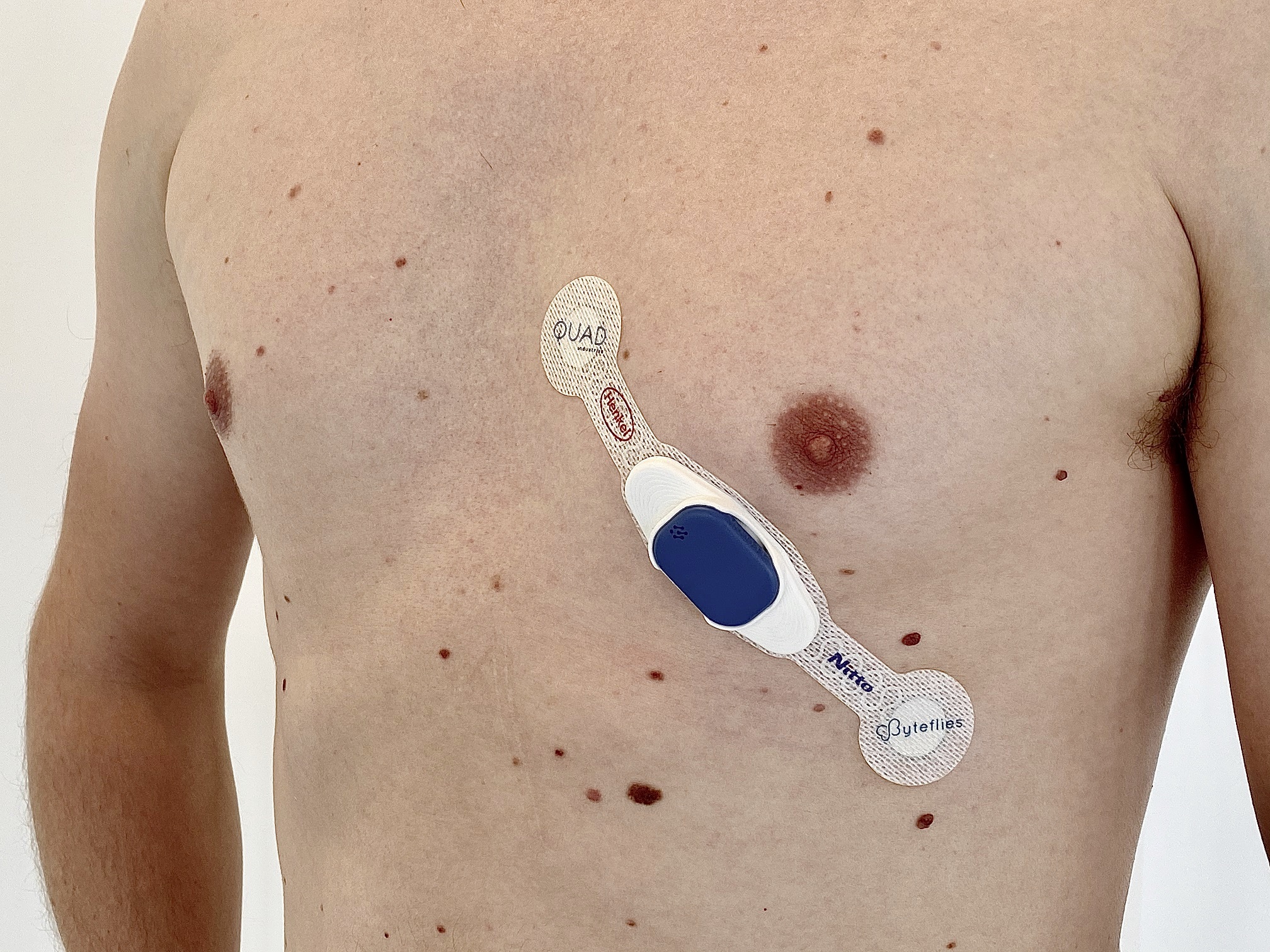The new 'COVID-19 smart patch' is the result of a collaboration between the Belgian companies Byteflies, Melexis, Quad Industries, Televic and Z-Plus and the Belgian departments of multinationals Henkel and Nitto. All partners provided expertise and technology components for the 15 cm long adhesive patch, which can easily applied to the left side of the chest. It has been developed especially for skin-friendly, medical use and contains high-tech electrodes and conductive inks to register vital signs. A ‘sensor dot’ located in the centre of the patch collects the patient’s vital signs and sends all the data to the cloud wirelessly. A mini temperature sensor will also be integrated soon. The healthcare centre’s nurses and the patient’s general practitioner or specialist can then access this cloud data on a user-friendly platform. Thus, the innovative patch can improve the patient follow-up at home and reduces time and effort for medical stuff in data management.